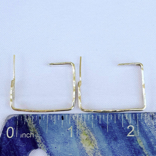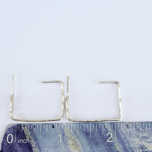 Sterling Silver Flat Hammered Rectangle Hoop